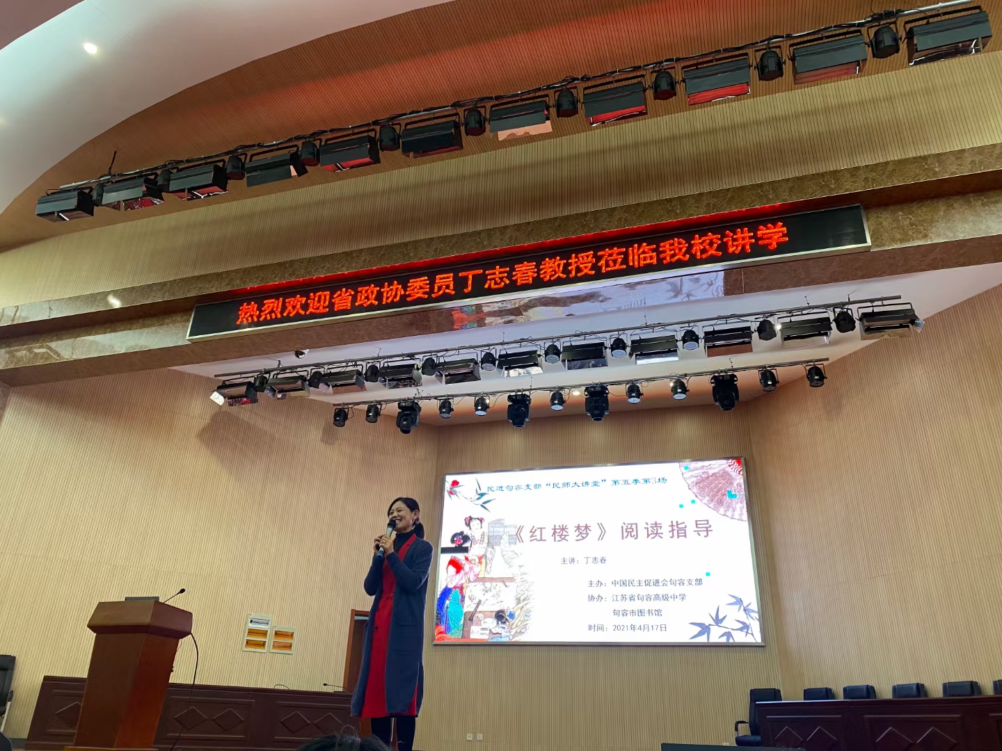 4月17日,马克思主义学院丁志春老师受邀到江苏省句容高级中学作《<红楼梦>阅读指导》讲座。丁老师和大家一起读红楼,传扬文化经典,增强文化自信。讲座受到在场师生的热烈欢迎和高度认可。