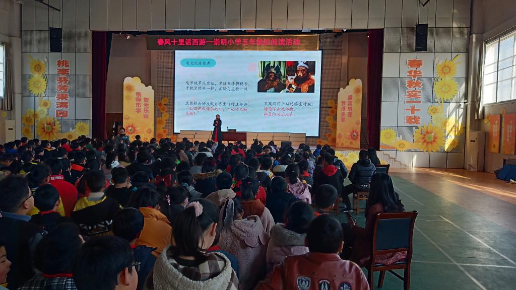 丁老师的此次讲座面向该校五年级的300余名同学进行,题目是《<西游记>里的思政课》。丁老师从一块石头说起,举出很多案例,对比了影视作品和原著原文,引导大家进行思考性、比较性、引发性阅读,进而从《西游记》中发现和坚定文化自信。讲座受到在场师生的高度评价。