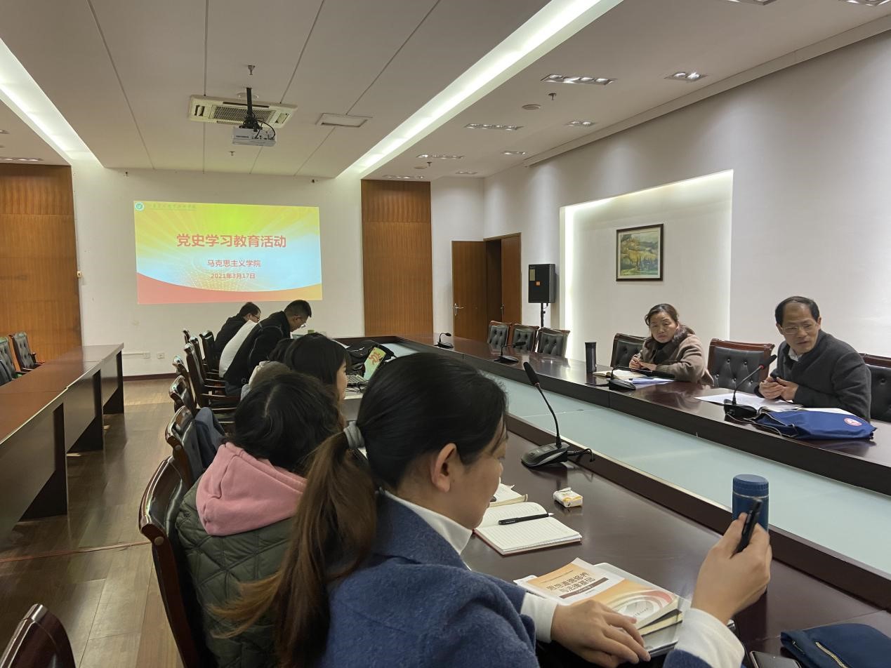 3月17日下午,马克思主义学院全体教师在图书馆一楼会议室开展党史学习教育,会议由马克思主义学院直属党支部书记马万顺主持。