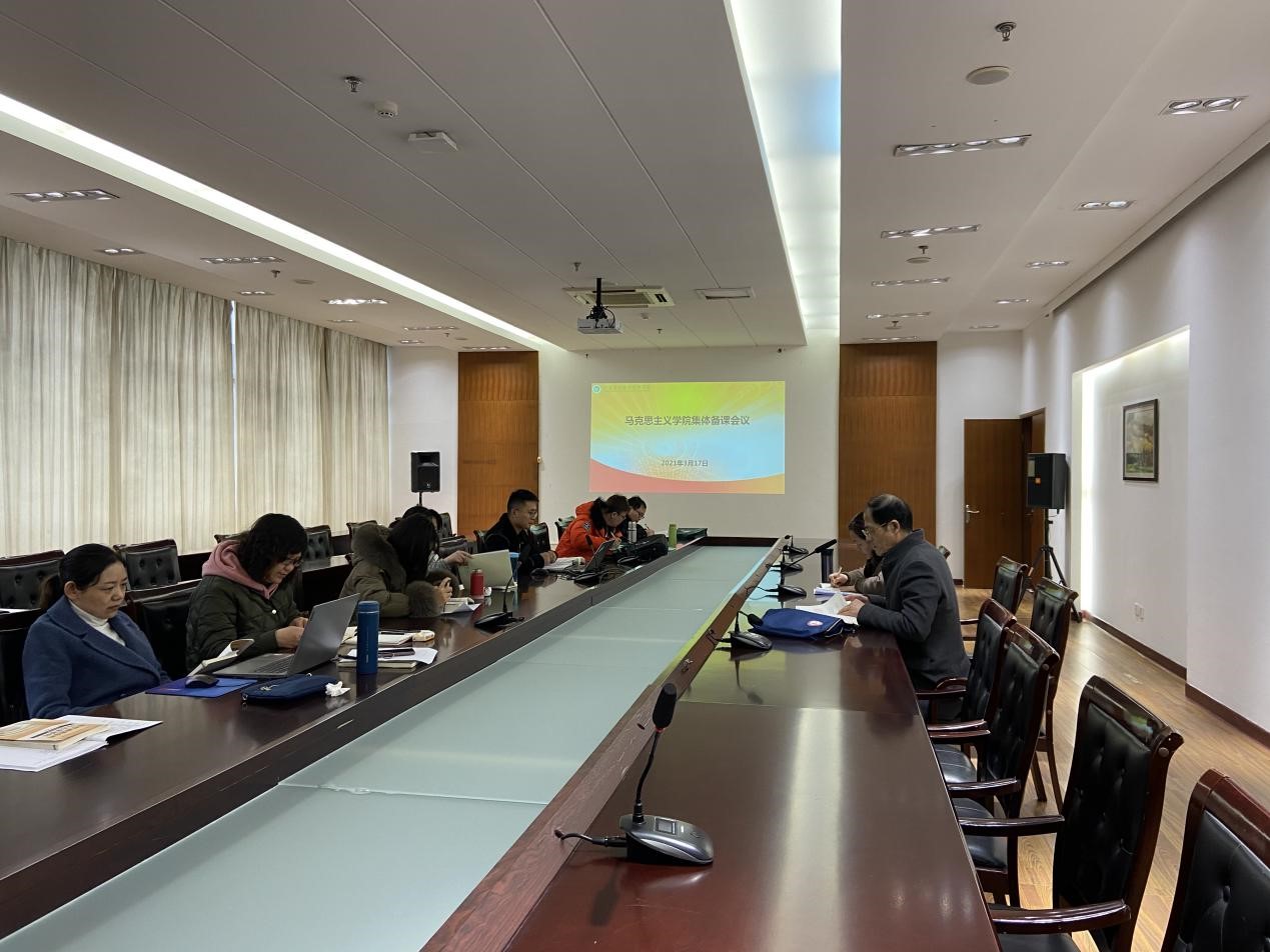 3月17日下午,马克思主义学院全体思政课教师在中层干部会议室召开《思想道德修养与法律基础》课程集体备课会,会议由学院副院长陈立娥主持。