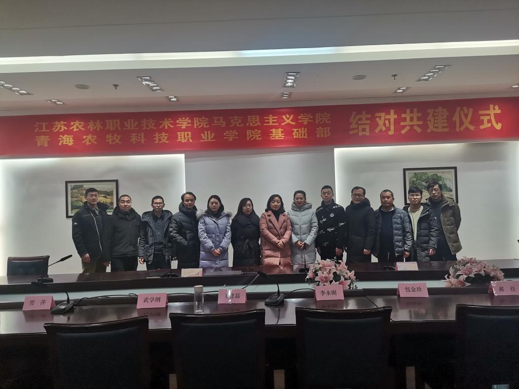 2020年1月9日下午,马克思主义学院与青海农牧科技职业学院基础部举行结对共建仪式。参加仪式的有马克思主义学院副院长陈立娥、体育部副主任黎明、概论教研室主任唐智及青海农牧科技职业学院基础部的李永刚、包金珍教研室主任等。