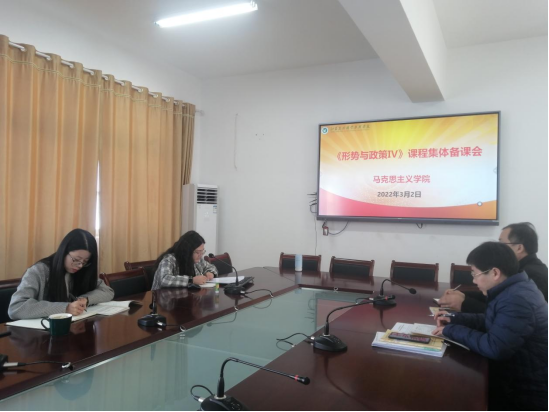 3月2日下午,马克思主义学院形策教研室在学院314会议室举行《形势与政策IV》课程专题三集体备课会。马院副院长、宣传部副部长唐智参加会议,备课会由形策教研室主任徐井柱主持。本学期承担《形势与政策IV》课程授课任务的思政课专任教师参加会议。
