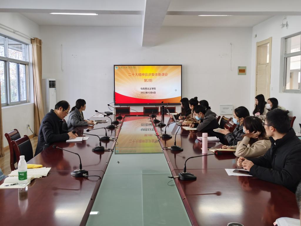 为深入学习贯彻党的二十大精神,进一步推进党的二十大精神宣讲工作,12月6日下午,马克思主义学院在创客空间314会议室开展党的二十大精神宣讲第二期集体备课会。