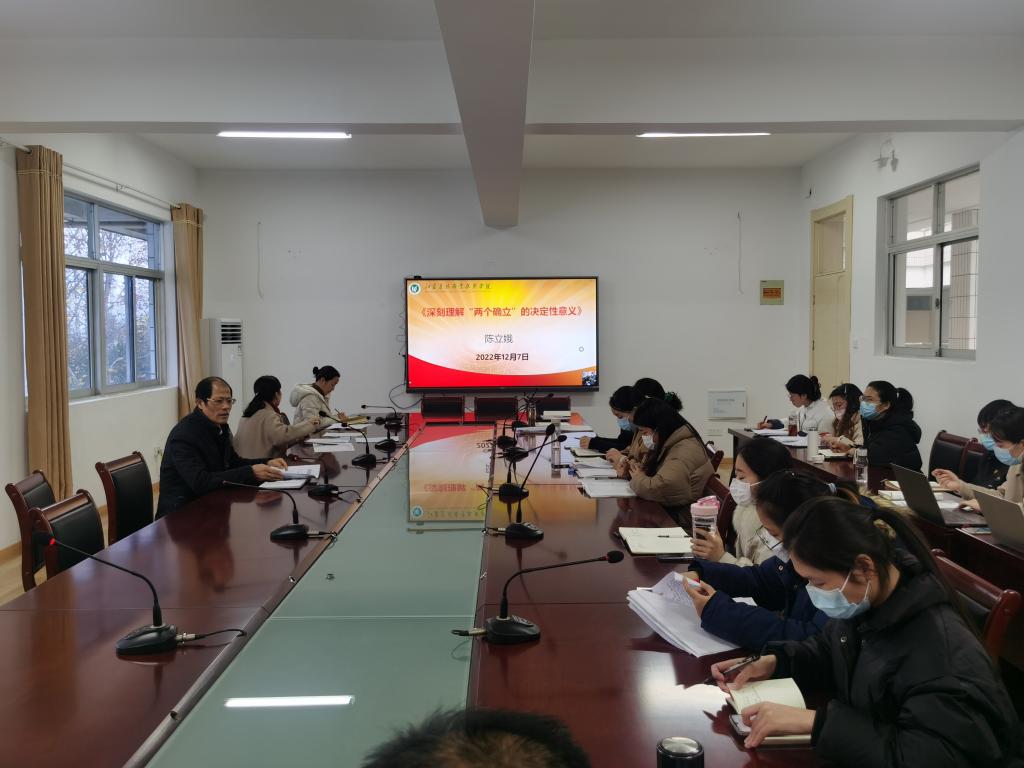 12月7日下午,在创客空间314会议室,马克思主义学院副院长陈立娥为全体党员上了一堂题为“深刻领悟‘两个确立’的决定性意义”的党课。