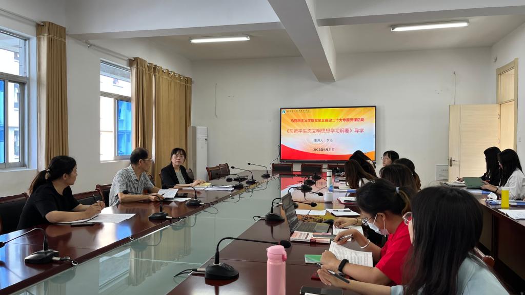 9月21日下午,在创客空间314会议室,马克思主义学院党总支副书记李杨同志给全体党员上了一堂《习近平生态文明思想学习纲要》导学的党课。