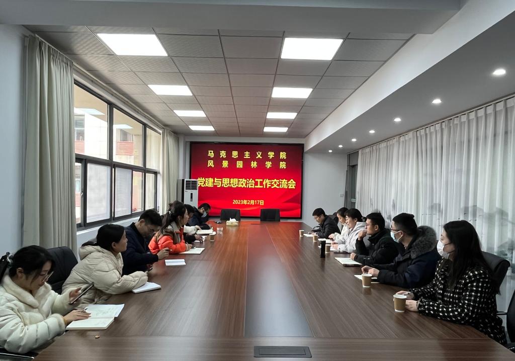为进一步推进学院党建工作和课程思政建设,2月17日下午,马克思主义学院与风景园林学院开展了党建与思想政治工作交流。马克思主义学院党总支副书记李杨、副院长陈立娥及双方党员代表参加交流会。