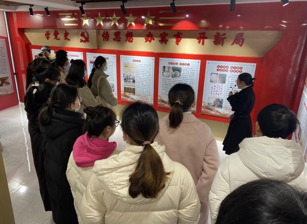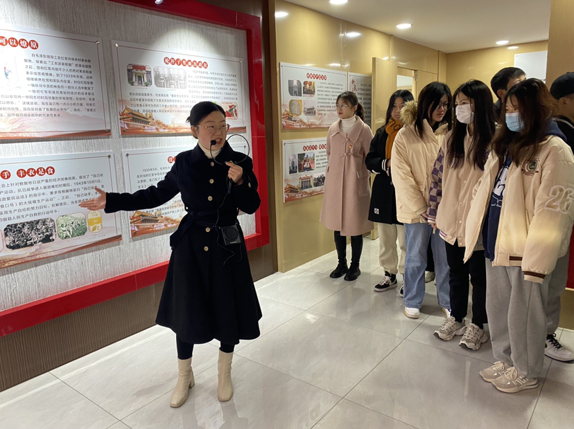朱静静老师围绕馆内新民主主义革命时期、社会主义革命和建设时期、改革开放和社会主义现代化建设时期及中国特色社会主义进入新时代,这四个时期的展板内容,通过人物故事和党史案例,以沉浸式方式带领同学们感受那段峥嵘岁月。、