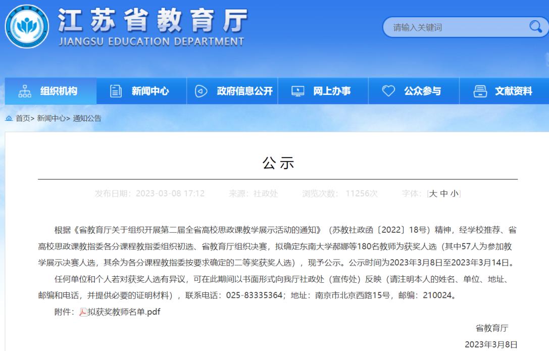 近日,江苏省教育厅公示了江苏省第二届高校思想政治理论课教学展示活动的比赛结果。我校马克思主义学院张玉老师凭借扎实的理论素养、良好的教学能力和稳健的台风,斩获《思想道德与法治》(高职高专)组一等奖。