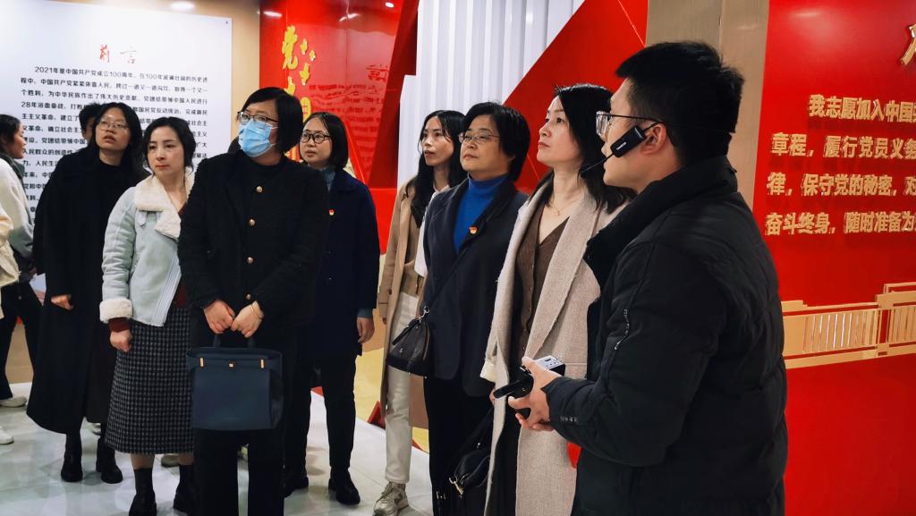 3月22日,苏州健雄职业技术学院经济管理学院党总支书记周丽雅等一行25人来我院参观党史学习教育展览馆实境课堂。
