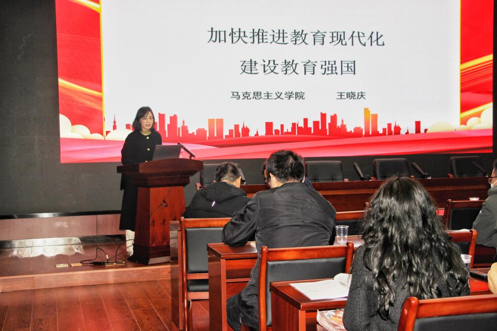 3月31日下午,马克思主义学院第一党支部书记王晓庆老师受邀为畜牧兽医学院党员教师作了一场题为《学习党的二十大精神,加快推进教育现代化,建设教育强国》的讲座,受到牧医学院教师的好评。此次宣讲也是马克思主义学院与畜牧兽医学院双方共建交流的良好渠道,极大地加强双方合作交流,促进课程思政建设发展。