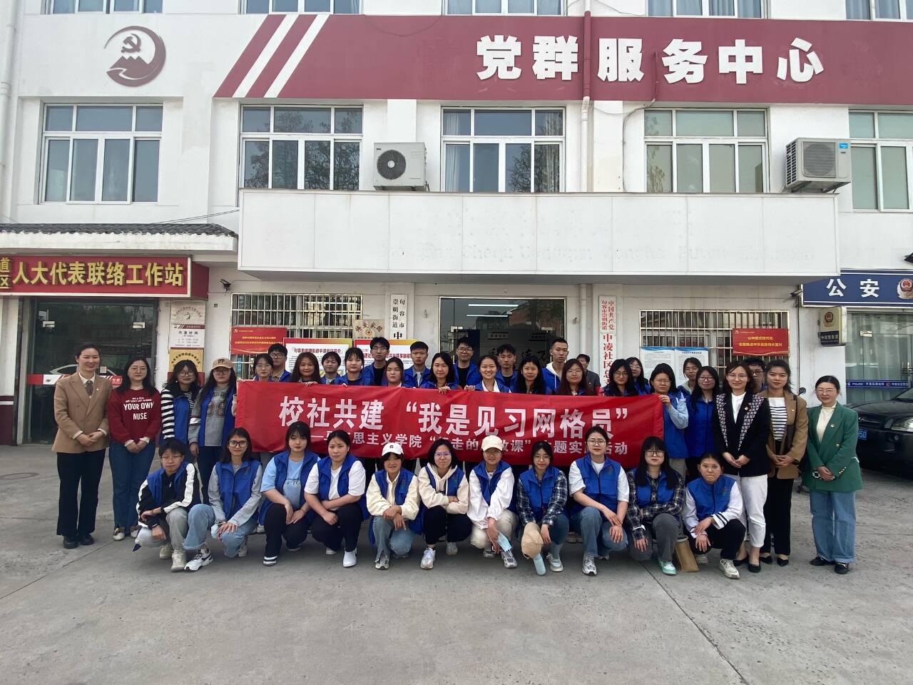 为积极推进“大思政课”建设,让学生体验平凡岗位,参与社会治理, 4月12日下午,马克思主义学院教师带领40余名2021级学生代表开展了“我是见习网格员”——“行走的思政课”主题实践活动,把思政课“移”到了句容市崇明街道中凌社区。
