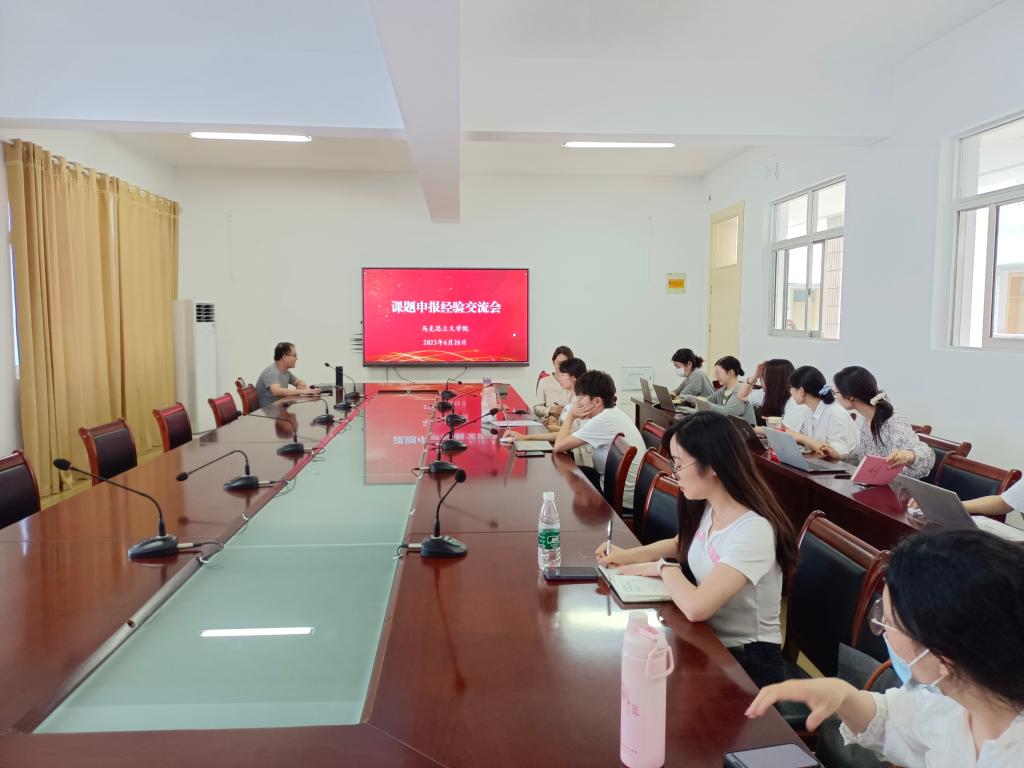 6月26日下午,马克思主义学院副院长唐智主持召开课题申报交流会,近两年入职的20余名思政课教师参加了交流会。