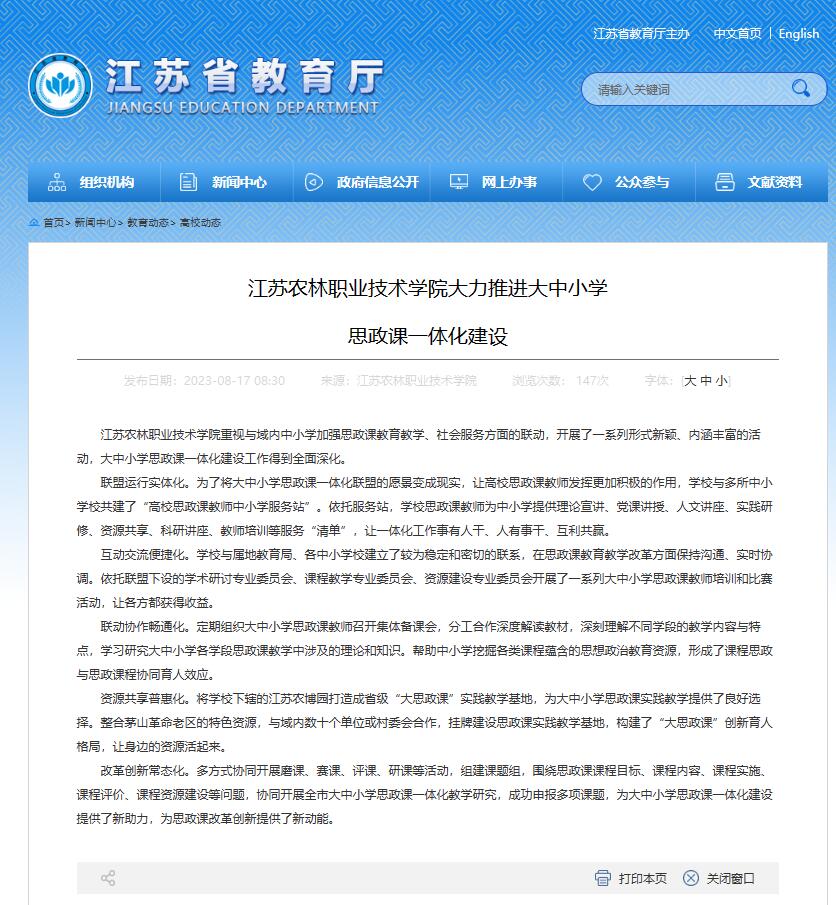 【江苏省教育厅】江苏农林职业技术学院大力推进大中小学思政课一体化建设