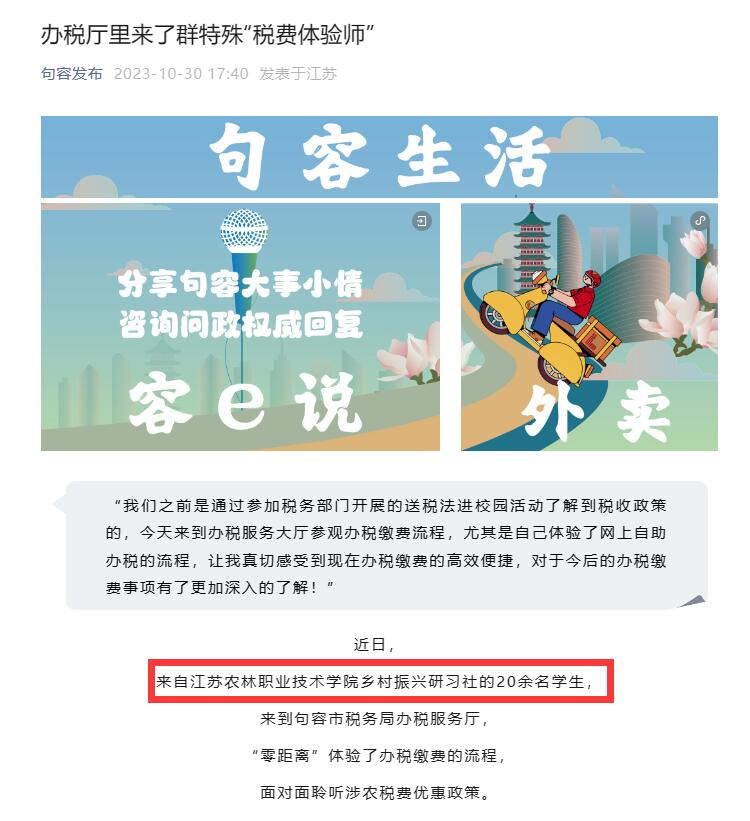 【句容发布】我院乡村振兴研习社开展活动被句容市委、市政府官方微信平台“句容发布”推介