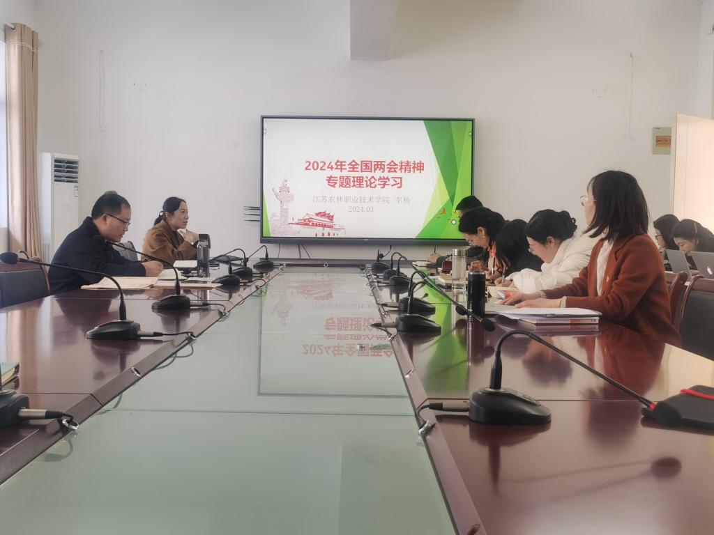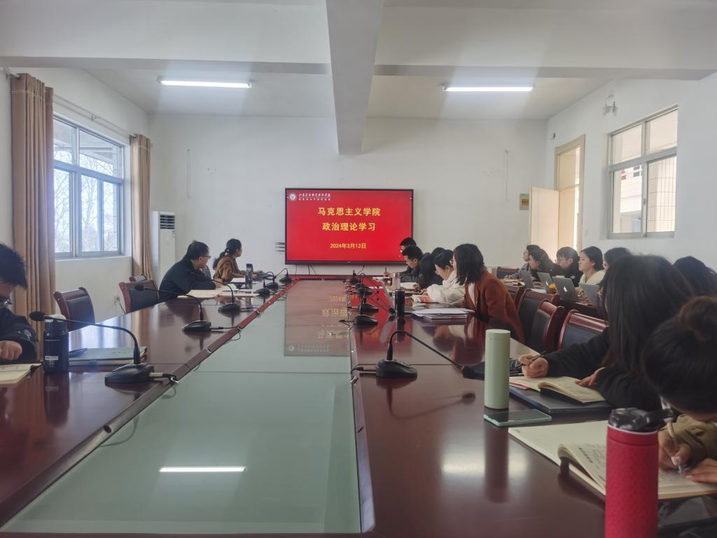 3月13日下午,马克思主义学院在创客314会议室开展2024全国两会精神专题学习会,会议由党总支副书记李杨同志主持,全体教师参加会议。