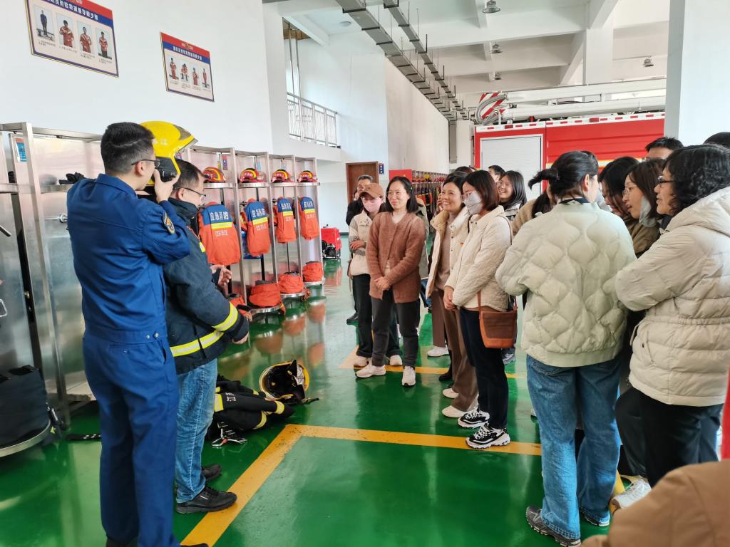 3月20日下午,马克思主义学院教职工前往句容市消防大队参观学习。在消防大队,老师们在消防指战员的讲解下,参观了各种类型的消防车辆、消防器材,体验了灭火战斗服、抢险救援服、空气呼吸器和消防水枪,并学会了灭火器、灭火毯的使用方法。