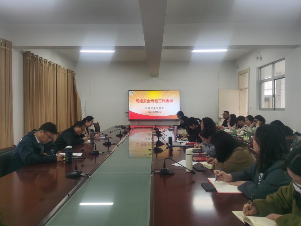 4月3日下午,马克思主义学院在创客314会议室召开2024年第二季度意识形态分析研判暨网络安全专题工作会议。会议由党总支书记李杨同志主持,全体教职工参加会议。
