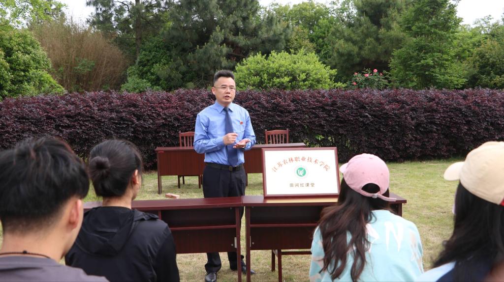 5月9日下午,马克思主义学院副院长唐智,思政课教师赵方园、黄飞带着学生在句容市茅山风景区管委会夏林村上了一堂田间思政课。