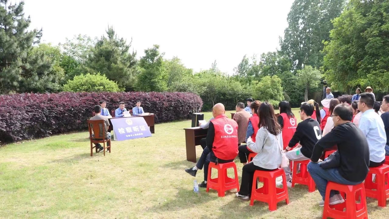 句容市人民检察院就一起非法狩猎案在该村举行检察公开听证,检察官与森林公安派出所民警现场开展普法活动,师生们全程聆听。随后,检察院张红兴副检察长和唐智副院长分别作了法治教育。这堂田间思政课创新了形式,让在场师生印象深刻、受益良多。
