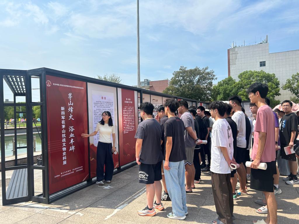 展览围绕“铭记历史、缅怀先烈、珍爱和平、开创未来”主题,精选历史照片、档案文献、实物史料等200余件,系统展现新四军在茅山抗日根据地听党指挥、浴血奋战、军民团结的英雄事迹。马克思主义学院积极组织师生分批观展,通过现场讲解与图文展示,师生们深入了解了新四军艰苦卓绝的抗战历程,深受革命精神感染。