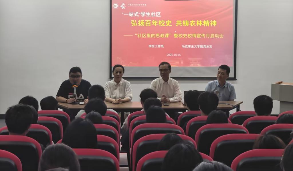 本次活动以“扎根社区、浸润思政、传承校史”为主线,通过协同联动推动思政教育下沉学生生活空间,激发青年学子的家国情怀与爱校荣校意识。随后马克思主义学院教师王新桂为在场师生做了一场以“弘扬百年校史,共铸农林精神”为主题的精彩宣讲。
