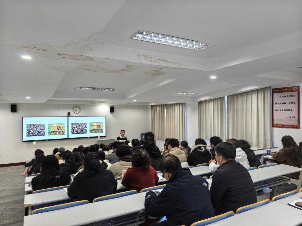 形势与政策教研室王新桂老师担任本次观摩活动的主讲。他以《阔步迈向农业强国》为主题进行教学展示。江苏航空职业技术学院、镇江市高等专科学校的9位思政课教师,马克思主义学院党政负责同志及思政课教师代表观摩了活动。观摩结束后,校内外同行开展了现场评课和教学研讨。