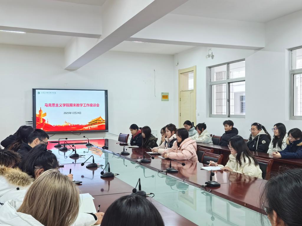 12月24日下午,马克思主义学院在创客空间314室召开学生座谈会。学院教学督导、教研室主任、授课教师代表及学生代表30余人参加会议。