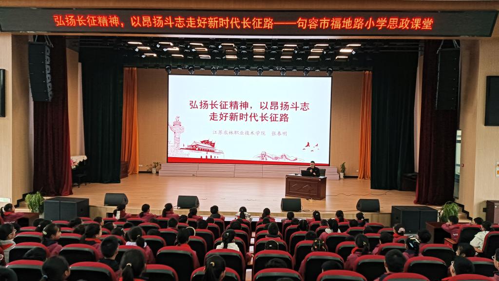 3月26日上午,张春明老师受邀到句容市福地路小学,为该校四年级全体师生作了一场题为《弘扬长征精神,以昂扬斗志走好新时代长征路》的理论宣讲。