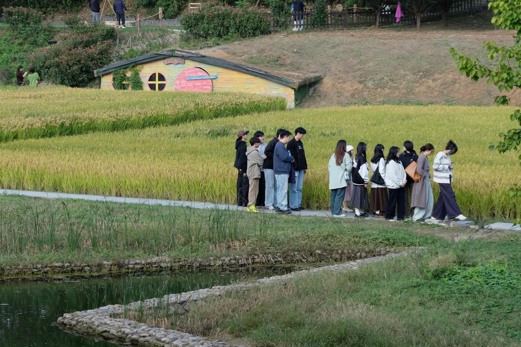 活动过程中,同学们以实际行动在佘村开展调研,践行青春誓言。他们发现佘村坚持村民主体地位,80%以上业态由本地村民自主经营,构建多元业态形成 “活态乡村” 范式。面对旅游淡季与环保挑战,佘村加强环境治理,平衡农业种植与旅游观光,万亩水稻田与季节性花海成重要旅游资源,印证 “农旅融合” 的可持续性。