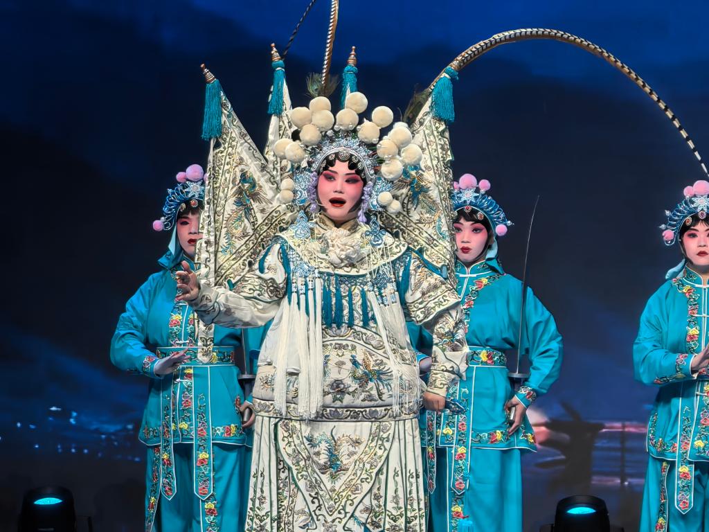 舞台上,青年演员们唱腔高亢婉转,做派英气逼人,完美融合了戏曲程式与现代舞台美学。一句“你本是我杨家传宗虎将,你本是大宋朝架海金梁”的高腔,配合紧密的锣鼓点,将巾帼英雄的忠勇与担当展现得淋漓尽致,充分展现了传统戏曲艺术的独特魅力,也体现了当代大学生对中华优秀传统文化的深刻理解与创新传承。