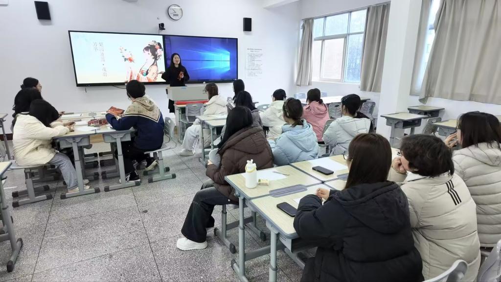 下午两点,活动在经典扬剧选段中拉开帷幕。马克思主义学院杨柳老师现场导聆,带领社员走进扬剧百年历史,解读非遗底蕴。围读环节,社员们分角色朗读剧本。真相复盘阶段,指导老师苟婷带领社员们在推理中感悟地方戏曲的文化内涵。